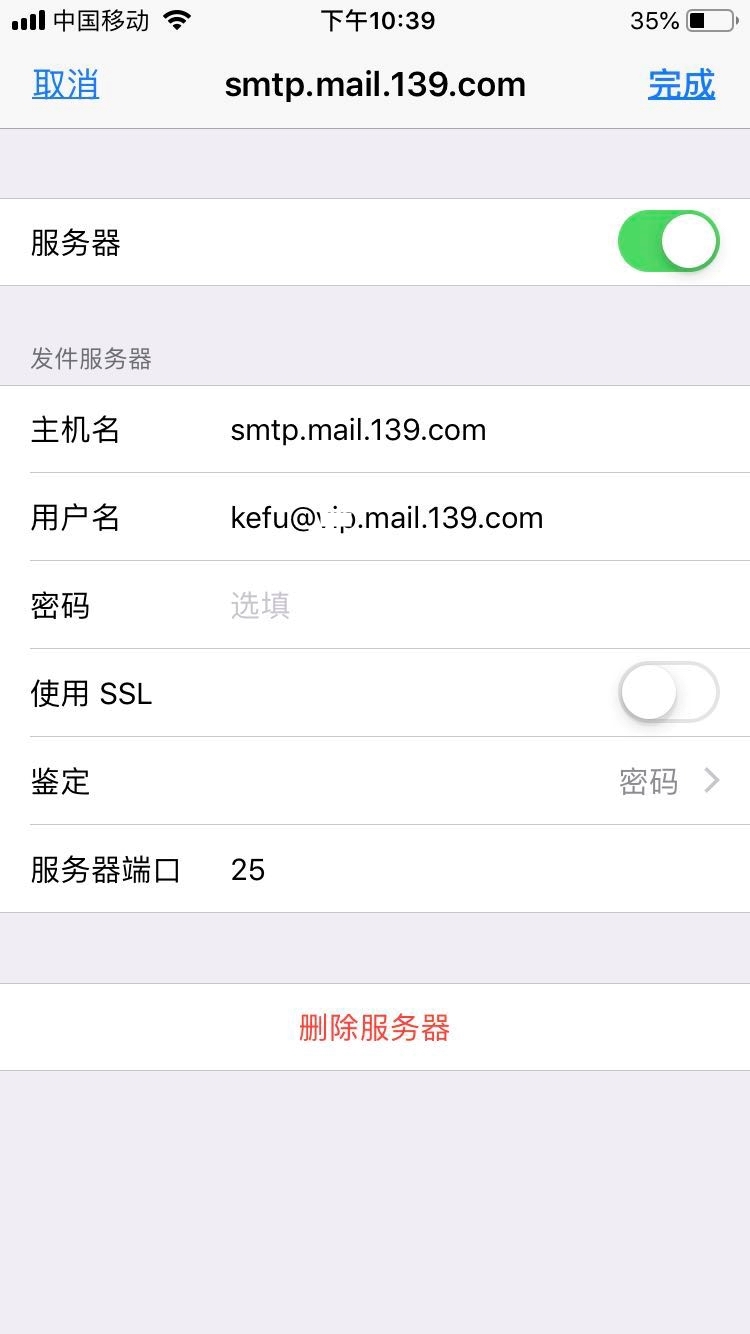 发送邮件服务器:smtp.mail.139.com;
